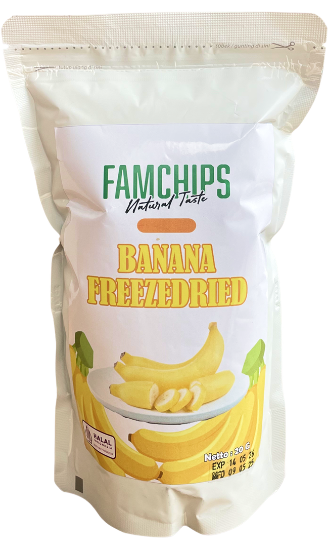 Keripik Pisang beku dengan rasa manis alami dan tekstur renyah yang unik, camilan sehat untuk keluarga.